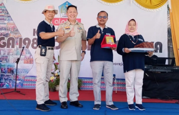 Penyerahan cinderamata dari Alpega 80 kepada SMPN 4 Purworejo, Sabtu (17/12/2022) - foto: Koranjuri.com
