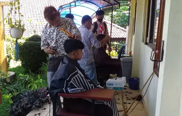 Selain itu, pihak sekolah juga mengundang dua tukang cukur untuk menertibkan anak-anak yang rambutnya belum sesuai aturan sekolah. Jadi siswa bisa cukur di sekolah dengan bayar seikhlasnya, yang nanti hasilnya digabungkan dengan uang donasi bagi korban gempa Cianjur.