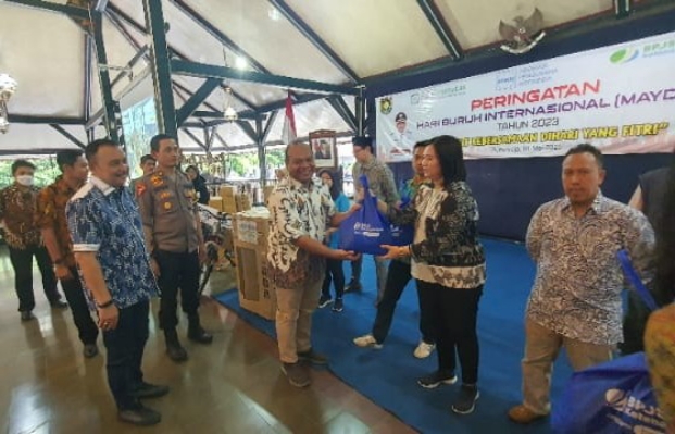Pada event ini, BPJS Ketenagakerjaan Cabang Purworejo menyediakan 63 paket sembako untuk buruh yang membutuhkan. Kepala BPJS Ketenagakerjaan Cabang Purworejo Riski Setiadi berkesempatan membagikan langsung paket bantuan sembako bersama Bupati Purworejo, didampingi tamu undangan lainnya.