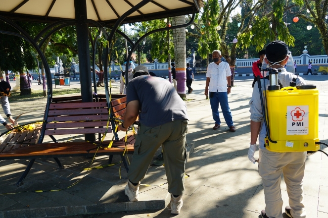 Paseban dan Amphitheatre yang terletak di alun-alun, kata Agung, juga belum diperkenankan untuk berkegiatan, tapi boleh untuk tempat istirahat dengan syarat tetap jaga jarak dan pakai masker.