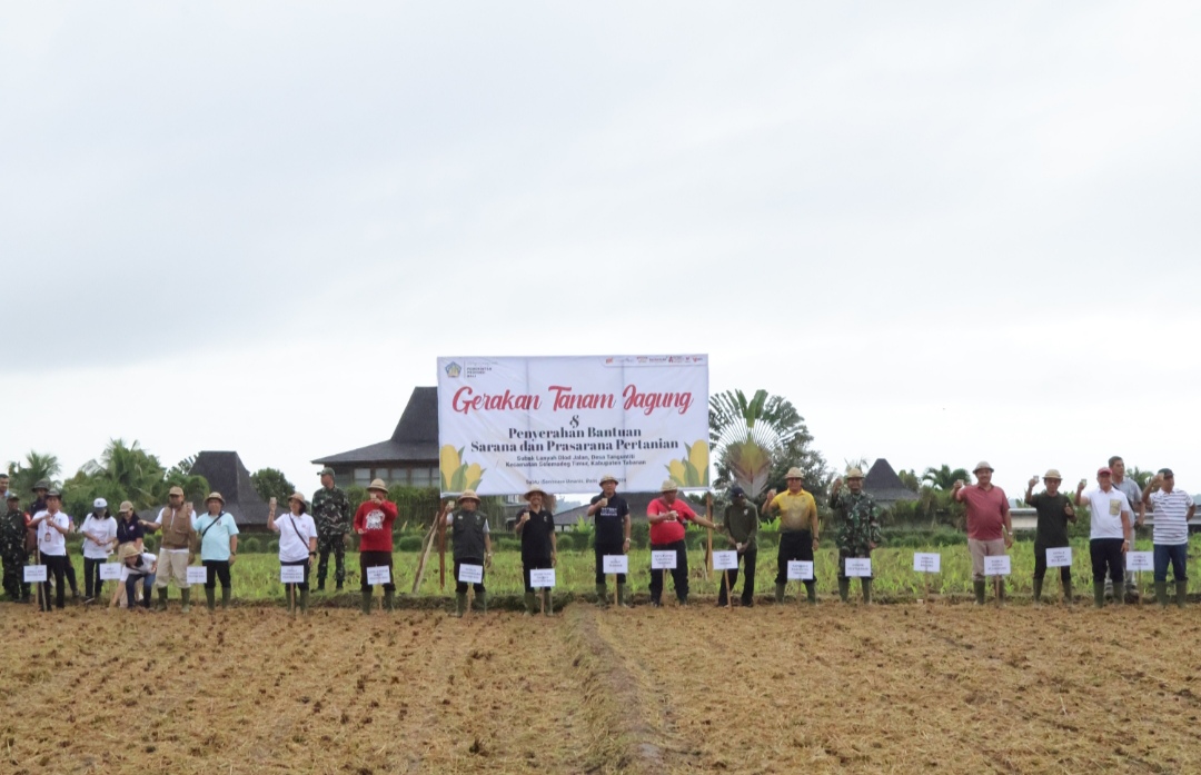 Gerakan tanam jagung dan penyerahan bantuan sarana prasarana pertanian kepada Kelompok Subak Lanyah Delod Jalan, Selemadeg Timur, Tabanan - foto: Istimewa