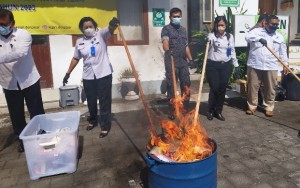KORANJURI.COM – Kejaksaan Negeri Denpasar memusnahkan barang bukti (barbuk) kejahatan yang telah inkrah atau berkekuatan