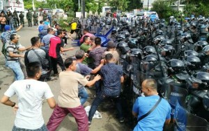 KORANJURI.COM – Simulasi penanggulangan huru-hara digelar Koarmada I dan Lantamal III Jakarta di Halaman Parkir