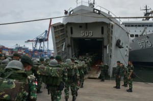 KRI Teluk Amboina-503 Angkut Pasukan Darat di Perbatasan RI-Malaysia