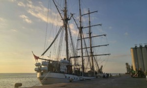 KORANJURI.COM – KRI Dewaruci yang membawa api obor Asean Games tiba di Makasar