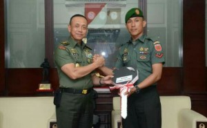 KORANJURI.COM – Kepala Staf TNI Angkatan Darat (Kasad) Jenderal TNI Mulyono, memberikan penghargaan kepada dua