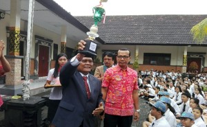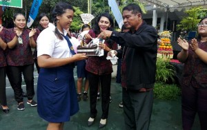 KORANJURI.COM – Widi Asih Utami (13), siswi SMP PGRI 1 Denpasar meraih juara favorit di