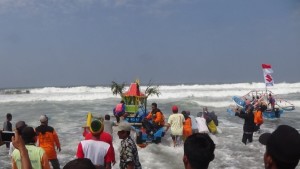 Gelar Sedekah Laut, Nelayan Kertojayan Larung Kambing Kendit