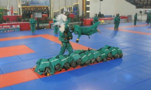 KORANJURI.COM – Atraksi pebeladiri Yongmoodo dari Batalyon Infanteri Raider 900/Satya Bhakti Wirottama Kodam IX/Udayana memukau