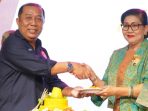KORANJURI.COM – Penerima lifetime achievement KPID Bali Putri Koster memberikan apresiasi kepada jurnalis dan penyedia