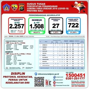 UPDATE Virus Corona di Bali 13 Juli: Total 2.257, Sembuh 1.508, Kasus Aktif 722 Orang