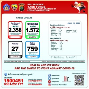 [UPDATE] 14 Juli: Bertambah 101 Positif di Bali, Total Sembuh 1.572 Orang