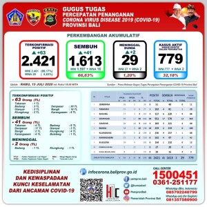 KORANJURI.COM – Gugus Tugas Percepatan Penanganan COVID-19 Provinsi Bali menyampaikan pembaharuan data perkembangan covid-19. Ketua