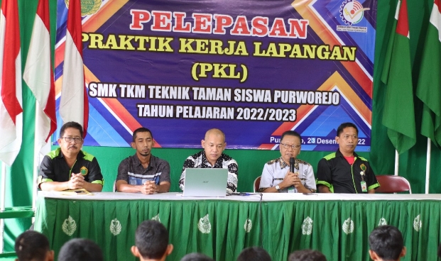 Secara simbolis, pelepasan siswa PKL ini ditandai dengan penyerahan siswa oleh Kepala SMK TKM Purworejo, Ki Gandung Ngadina, S.Pd., M.Pd.,. kepada perwakilan DUDI (Dunia Usaha Dunia Industri) yang diwakili Anton, pimpinan Sanggar Teknik Purworejo, Kamis (23/12/2022).