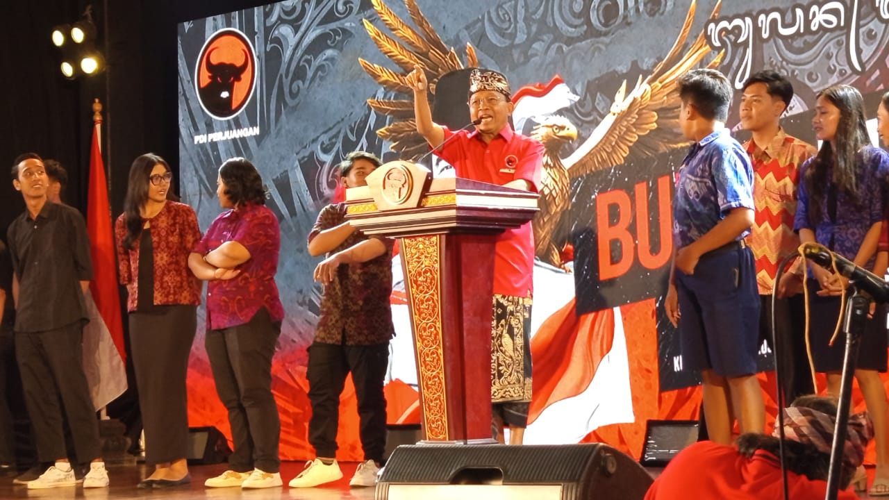 KORANJURI.COM – Dalam penutupan Bulan Bung Karno ke-7 DPD Partai Demokrasi Indoensia (PDIP) Provinsi Bali, siswa peserta lomba yang punya nama Bali Nyoman dan Ketut diminta naik ke panggung.