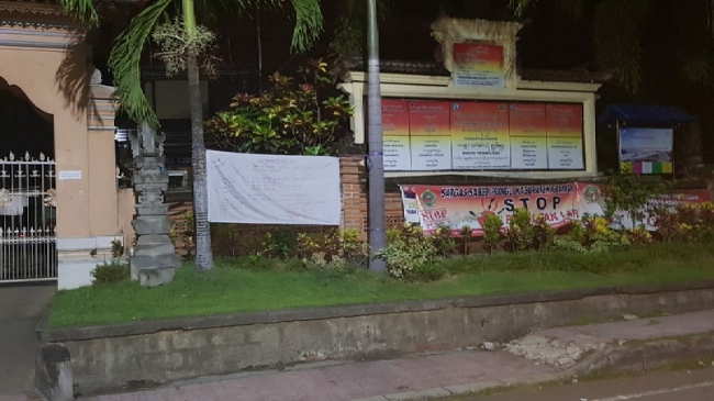 Salah satunya berada didepan Kantor Desa Lebih, Minggu (29/3/2020). Spanduk tersebut berisikan beberapa poin yang ditulis bewarnakan tinta merah.