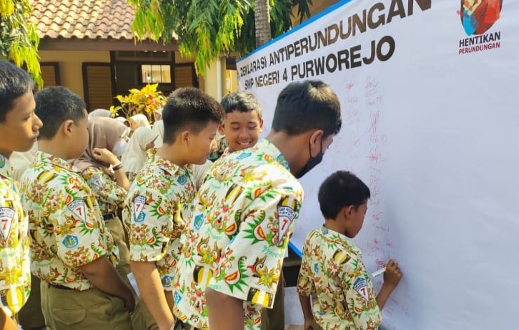 “Dari Kapolsek Purworejo menyampaikan materi tentang dampak perundungan dan sanksi hukumnya,” ujar Pawitno, usai deklarasi.
