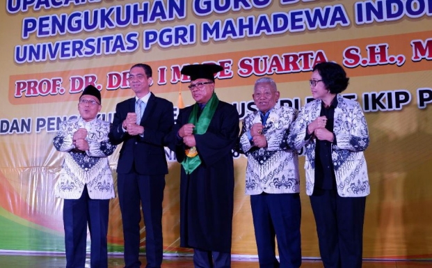 KORANJURI.COM – Rektor Universitas PGRI Mahadewa Indonesia (UPMI) Prof. Dr. Drs. I Made Suarta, SH., M.Hum., resmi menyandang jabatan fungsional sebagai guru besar pada Juni 2023 lalu. I Made Suarta dikukuhkan sebagai guru besar tetap kajian wacana sastra.