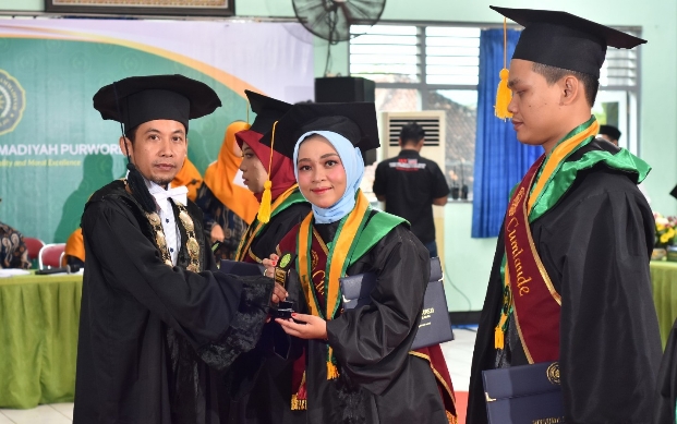 “Pendidikan dan pengalaman selama menjalani kuliah di Universitas Muhamamdiyah Purworejo, kami harap dapat menjadi bekal bagi Saudara baik dalam berfikir dan bertindak, sebagai insan intelektual yang mengedepankan perilaku yang bermartabat dan berbudaya,” pesan Rektor di hadapan para wisudawan.