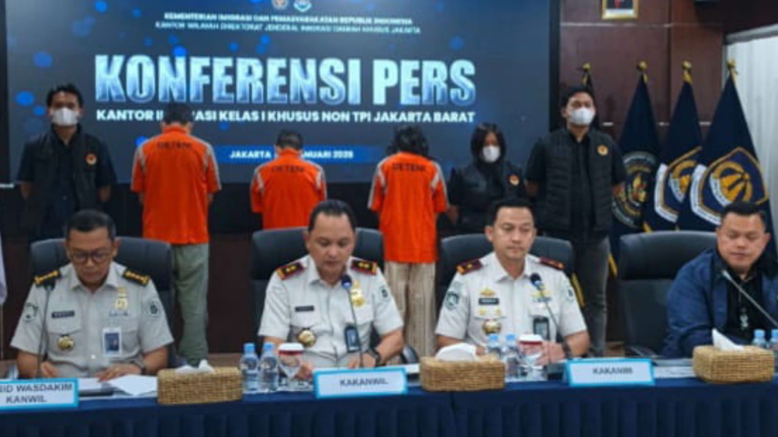 Kepala Kantor Wilayah Direktorat Jenderal Imigrasi DKI Jakarta Pamuji Raharja memberikan keterangan pers pengungkapan kasus tindak pidana penyelundupan manusia (TPPM), yang melibatkan WNA - foto: Ist.